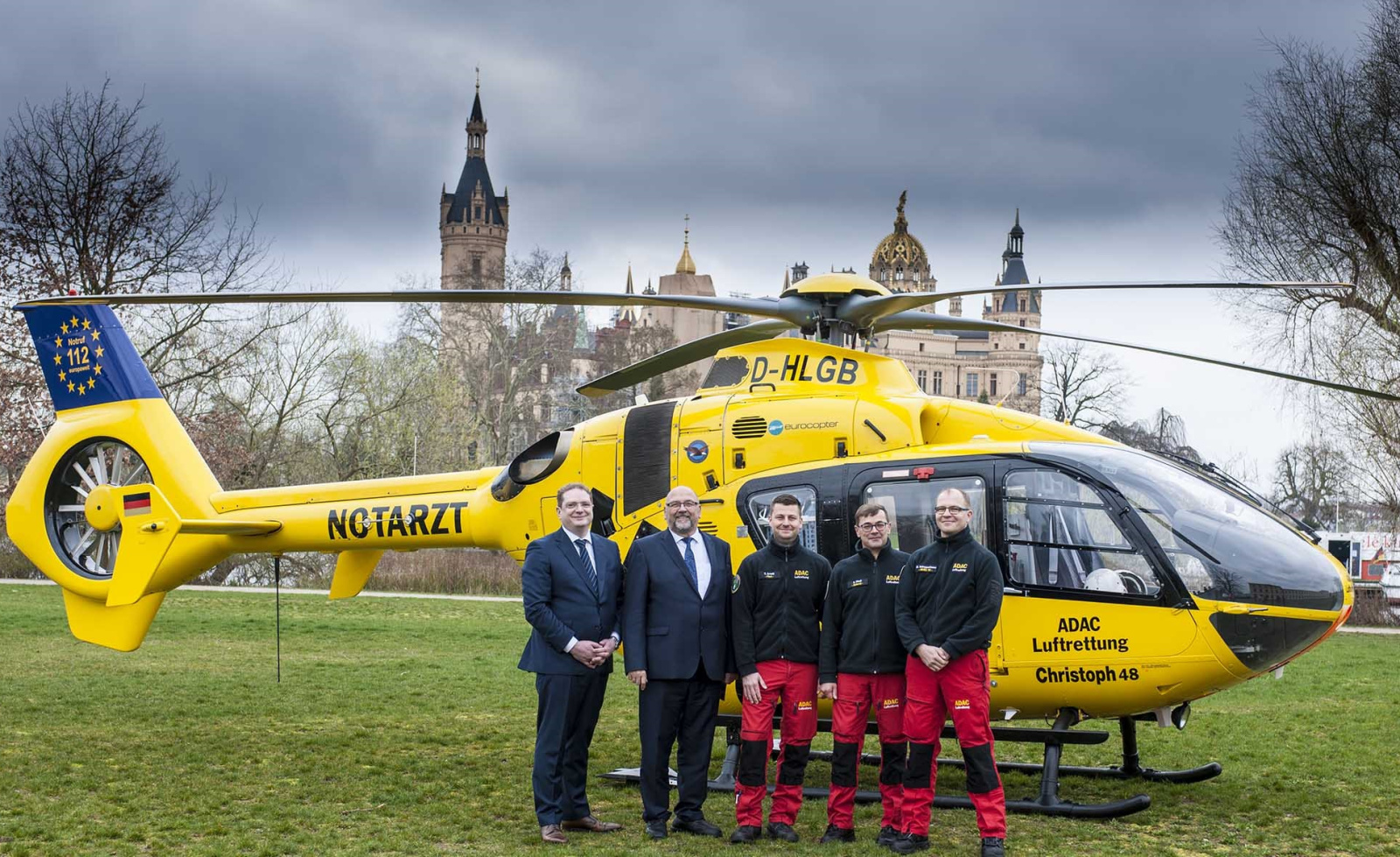 Besondere Auszeichnung für „Christoph 48“: Die Crew des ADAC Rettungshubschraubers in Neustrelitz ist am Freitag stellvertretend für alle Stationen der gemeinnützigen Organisation am Schloss Schwerin von der Politik geehrt worden. Der Minister für Wirtschaft, Arbeit und Gesundheit in Mecklenburg-Vorpommern, Harry Glawe, bedankte sich bei einem Empfang für die oft lebensrettende Hilfe der fliegenden Gelben Engel. Diese hatten am 26. März 2019 den 1.000.000. Rettungseinsatz seit 1970 geflogen. Für die Luftrettung in Deutschland eine historische Marke.