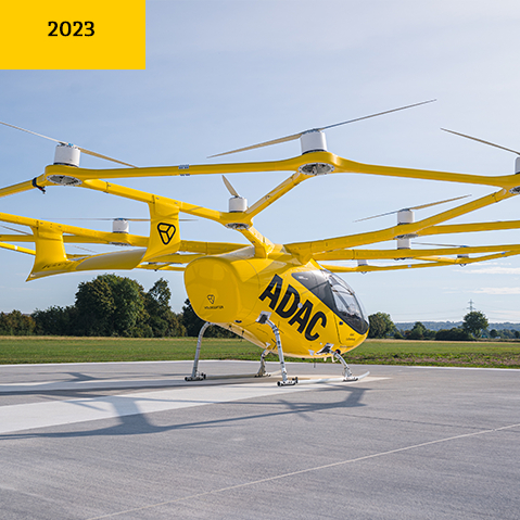 September: Nächster Meilenstein für die Kooperation der ADAC Luftrettung mit dem deutschen Fluggerätehersteller Volocopter: Der erste öffentliche Flug eines VoloCity.